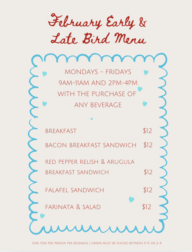 We hope you’ll come by to enjoy a meal, grab a coffee or pick up some house-baked pastries & a bottle of natural wine.